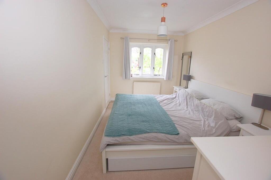 Bedroom – 2.98m x 2.39m – Fitted carpet, radiator, book shelves and double glazed window.