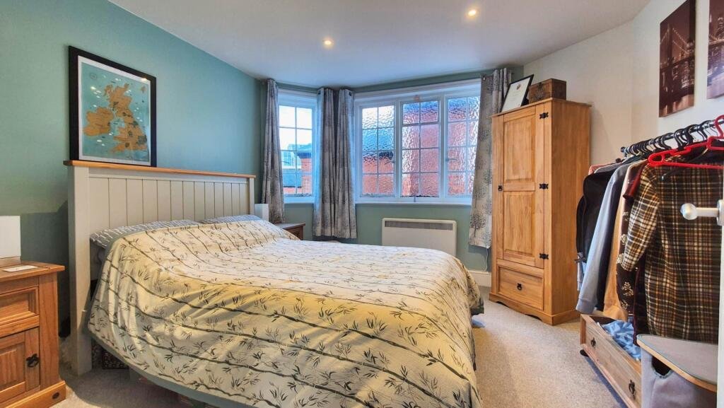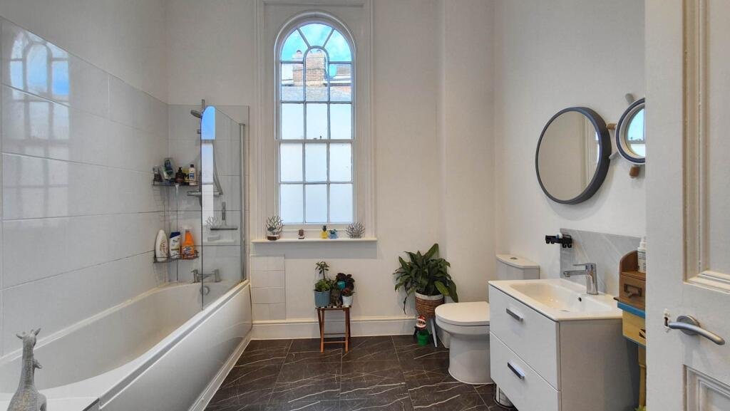 There are two large double bedrooms each with ornate Victorian windows.