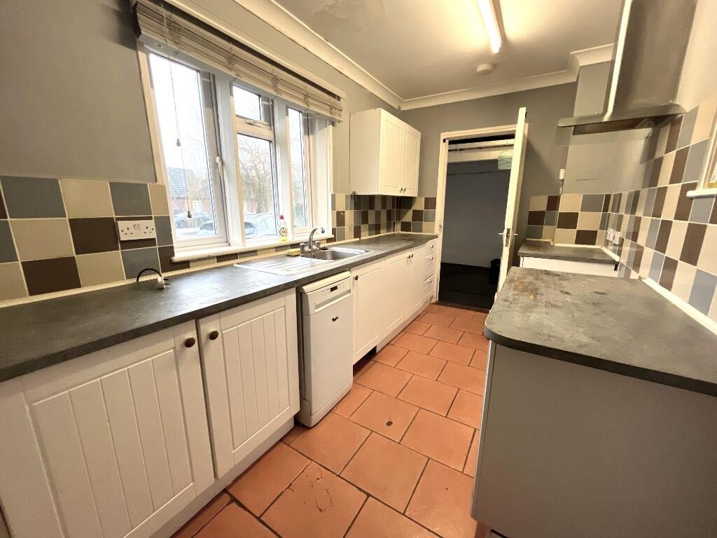 The galley style kitchen will be refreshed and offers an abundance of wall/base units, tiled flooring, plenty of worktop space, large front aspect window and has plenty of space for white goods.