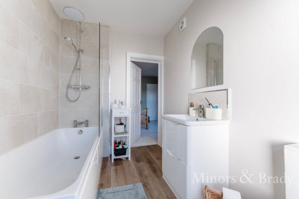 The second bathroom, located on the first floor, serves the bedroom accommodation, helping to reduce congestion during busy mornings and offering added convenience for occupants.