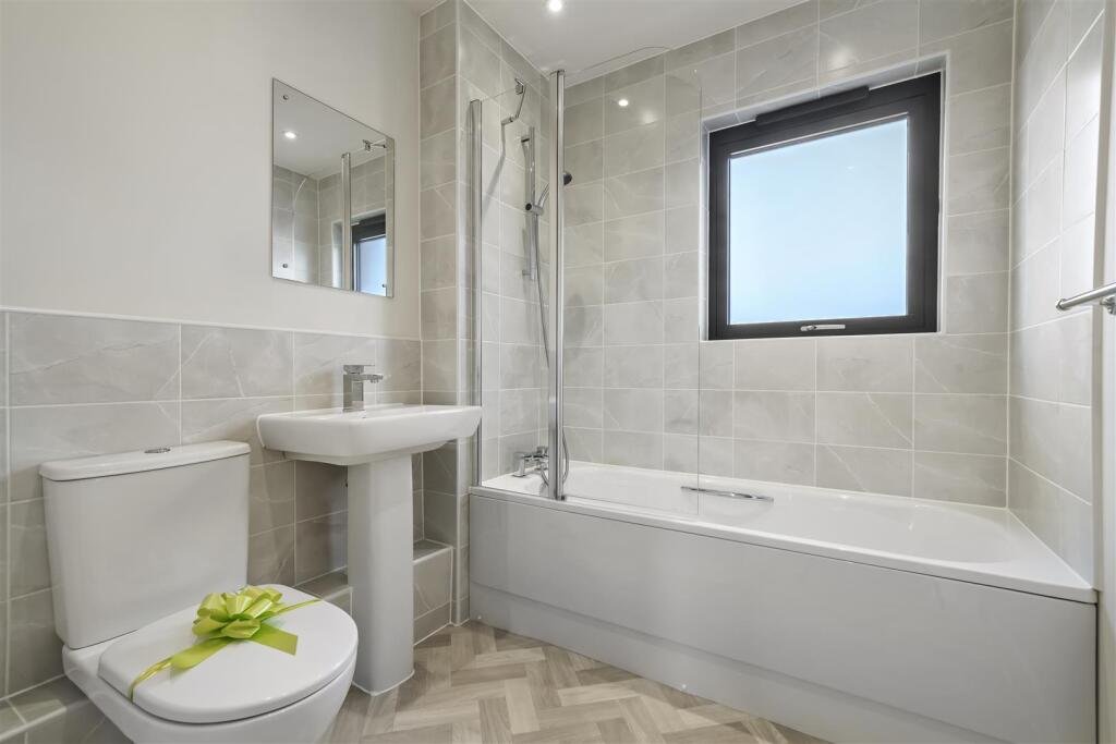 Bathroom – shower over bath with glass shower screen, wc, wash basin with mirror above and window to rear aspect.