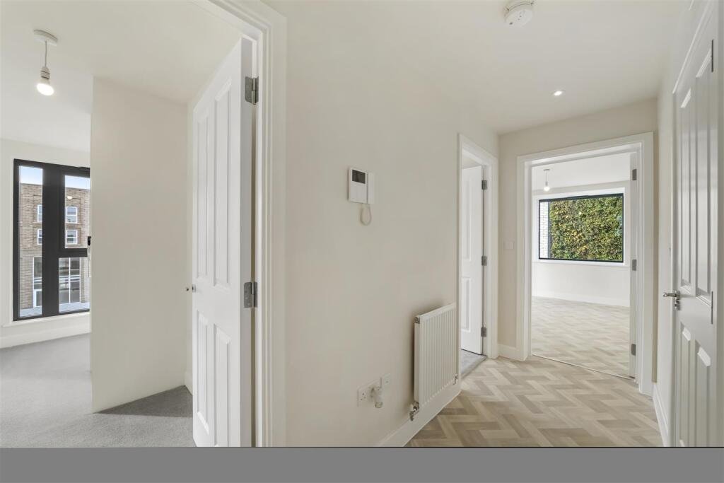 Entrance Hall – built in cupboard housing washer dryer and doors to open plan living room/kitchen, bedrooms and bathroom off.