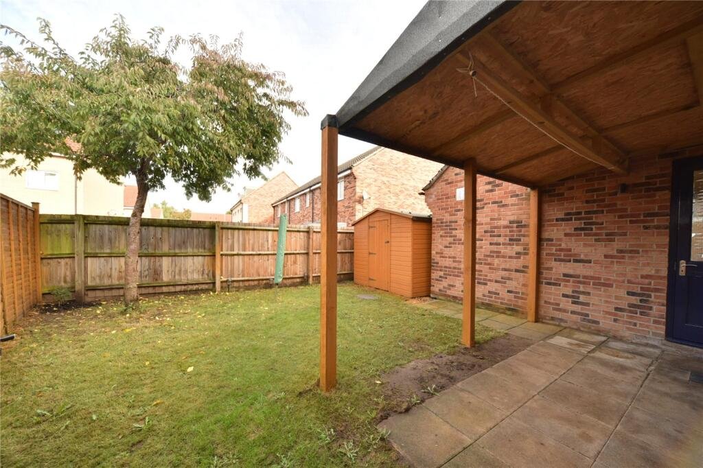 OUTSIDE:Enclosed rear garden mainly laid to lawn with patio area and storage shed with pedestrian access to garage.Off street parking to front for 2-3 cars.