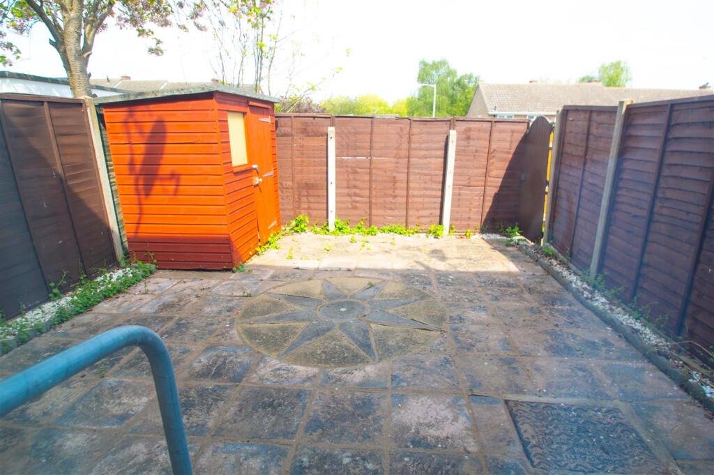 Outside – Low maintenance paved patio rear garden enclosed by timber fencing. One allocated parking space to front.