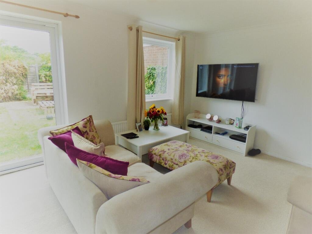 The property comprises: entrance hall with access to garage and fitted kitchen and electric cooker, large living/dining room with patio doors leading to secluded garden, two double bedrooms, one single bedroom with Fitted storage cupboard, bathroom with power shower over bath. The property benefits from a garage, off road parking and gas central heating.Theses photographs were taken prior to the
