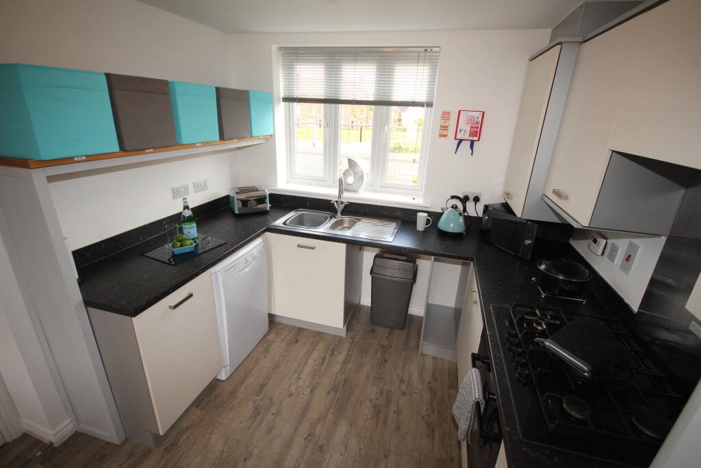 Kitchen / Dinning – communal kitchen with plenty of work top and cupboard space. Kitchen is equipped with oven, hob, extractor hood, sink and dishwasher, washing machine and large fridge freezers.
