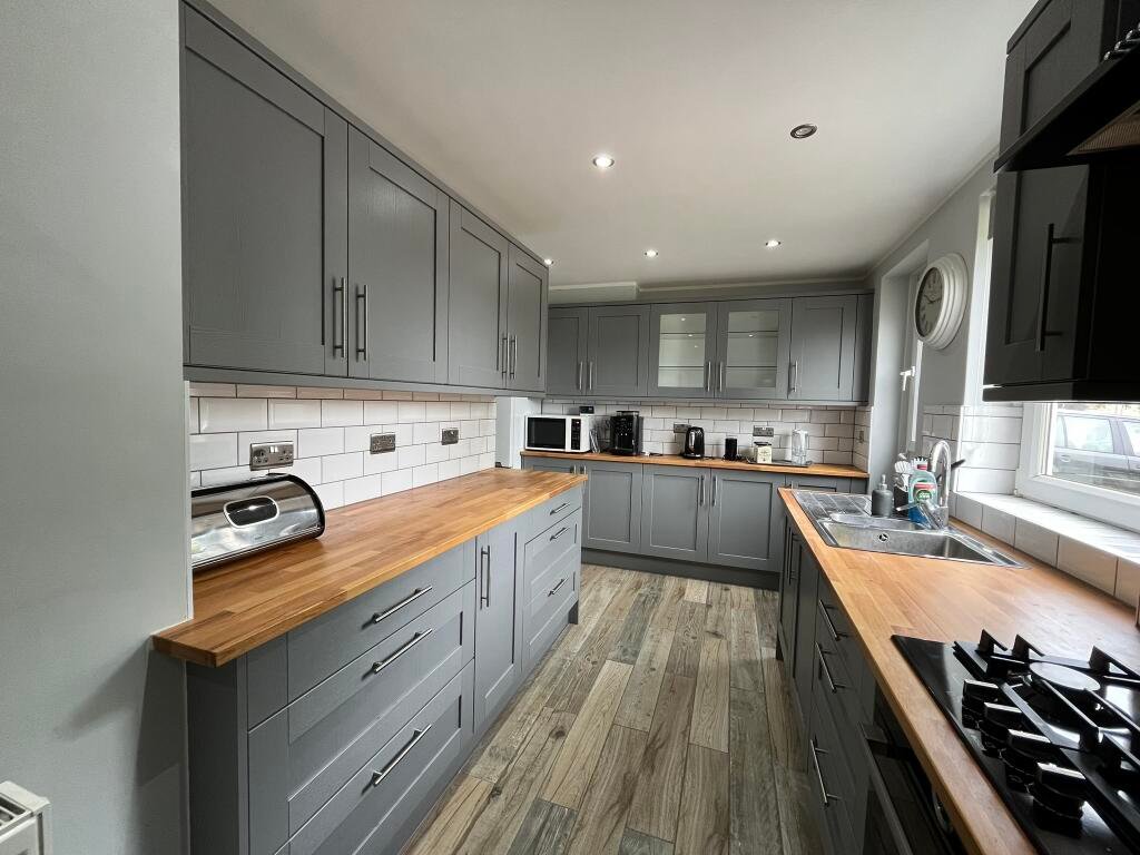 In brief, the property comprises a well-presented kitchen with a choice of low and eye-level storage, a utility room with access to the garden, spacious living/dining room. Upstairs are three