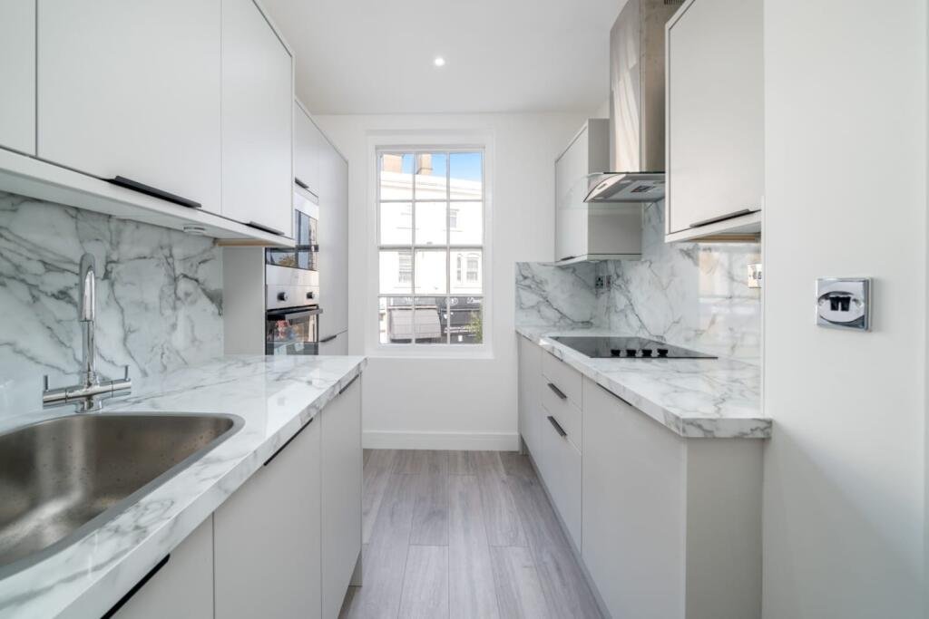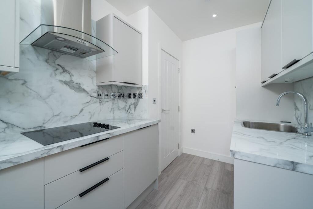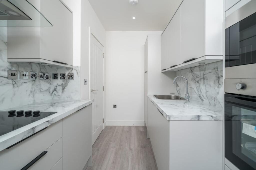 apartment features a bright and spacious open-plan living area with modern finishes throughout. The sleek fitted kitchen offers integrated appliances and generous storage, while the well-proportioned bedroom provides a comfortable and peaceful retreat. The property also benefits from a high-quality bathroom with a contemporary suite