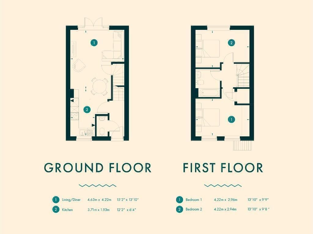 The first floor consists of two double bedrooms with a high spec family bathroom and further storage in bedroom one.