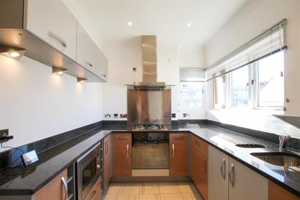 – feature corner window, high specification kitchen with base and wall units, granite work top, undermounted sink with mixer tap, gas hob with extractor hood above, integrated appliances including oven, microwave, slimline dishwasher, washing machine and fridge freezer.