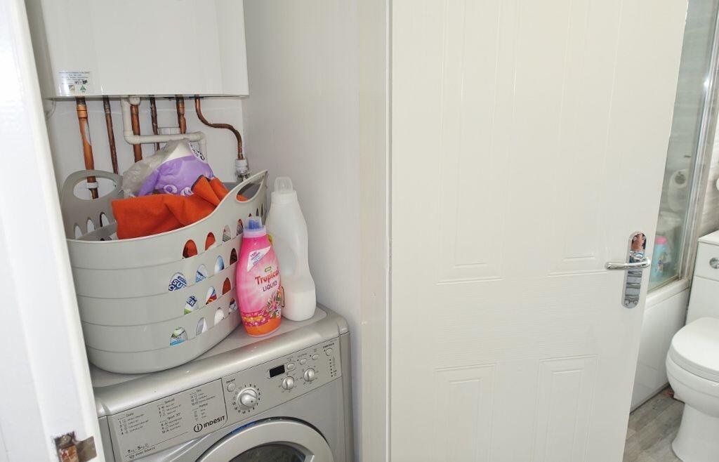WHITE GLOSS fitted kitchen with integrated cooker and hob, space for a dishwasher and fridge freezer, utility cupboard in the bathroom for a washing machine, wood effect vinyl flooring throughout downstairs, 2 bedrooms, modern bathroom with pumped shower over bath, private garden, and off-road parking…