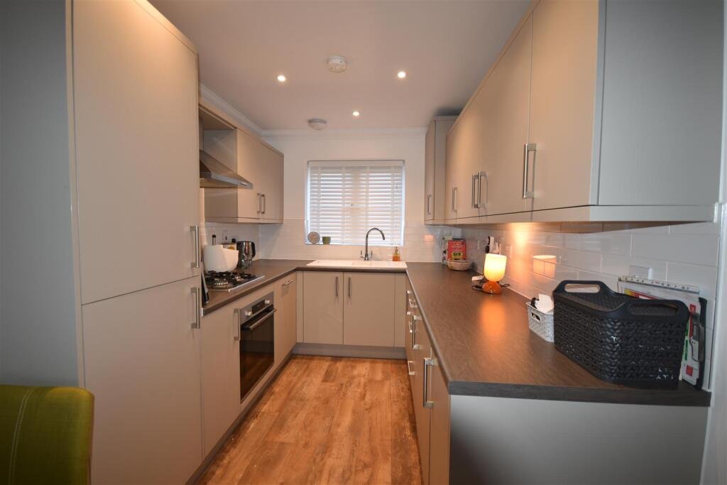 Kitchen – 2.87m x 2.29m (9’5″ x 7’6″) – Well appointed kitchen with integrated appliances , wall mounted gas boiler and window to front elevation