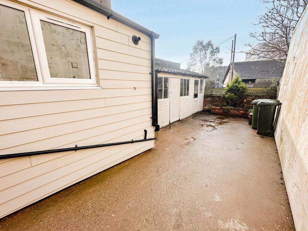 Outside, side access leads to a charming courtyard garden, offering a peaceful spot for outdoor dining or unwinding, complemented by useful external storage.