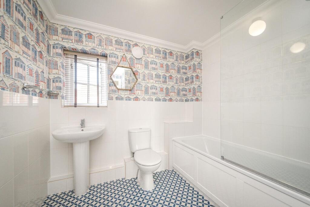 Bathroom8′ 8″ x 7′ 11″ max ( 2.64m x 2.41m max )Bath with shower over, WC, wash hand basin, radiator, part tiled walls and UPVC double glazed window.