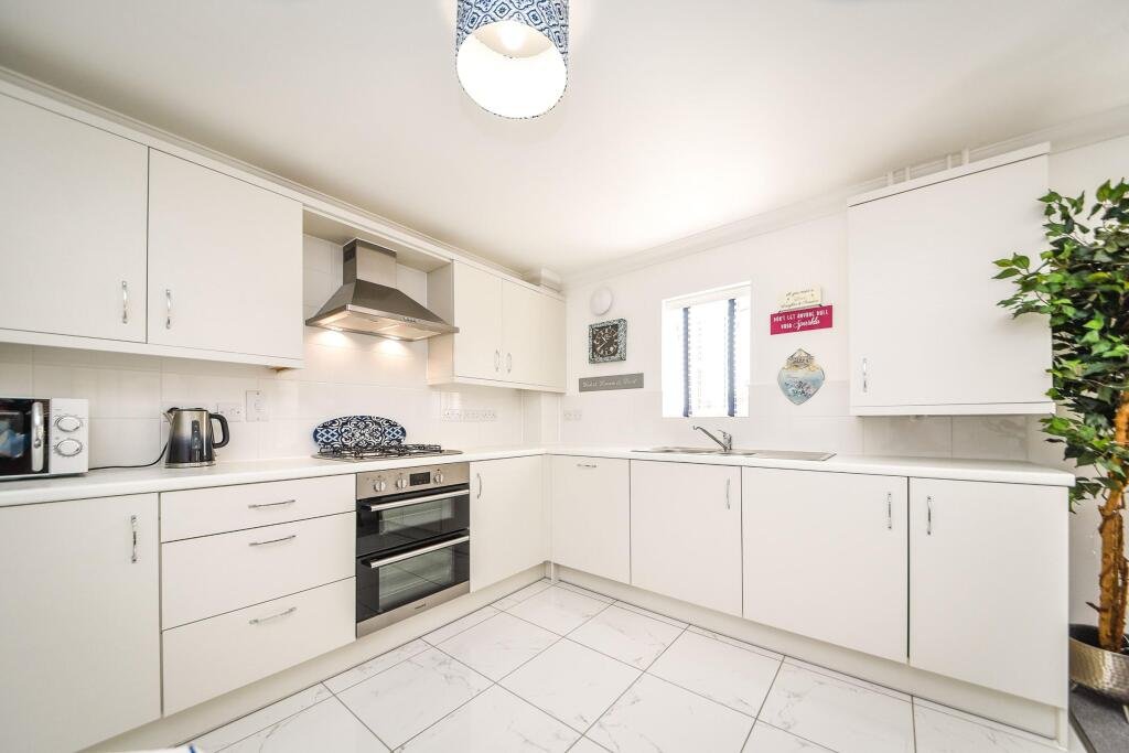 Kitchen AreaRange of wall and base units with inset sink and drainer and fitted worksurfaces. Built in double oven and hob with extractor over, fridge/freezer, dishwasher and washing machine. Tiled floor, boiler and UPVC double glazed window.