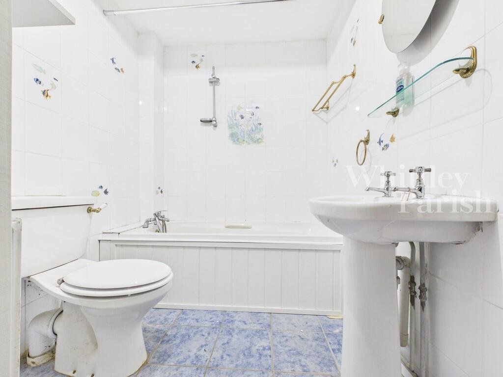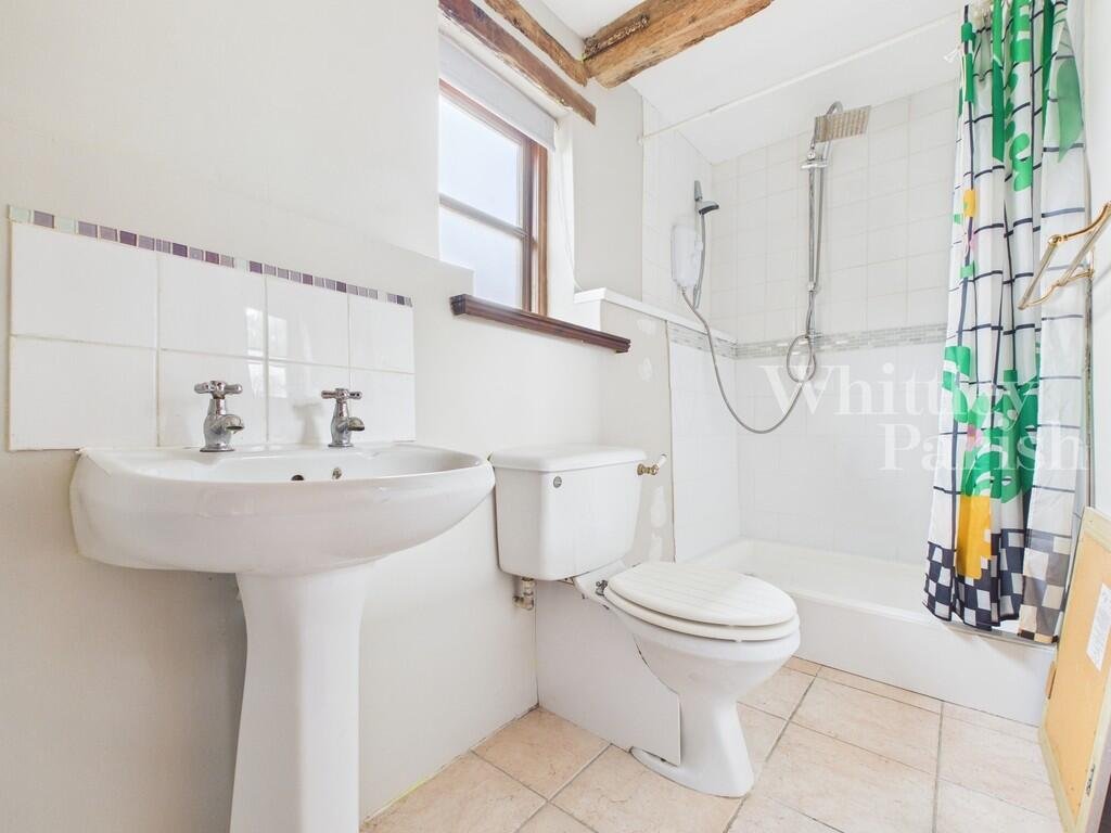 ENSUITE Tile flooring, ceramic white toilet and sink, walk in shower with tile surround, radiator, front aspect frosted window.Â