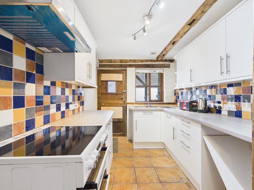 KITCHEN Tile flooring, brand new floor and wall units, tile splashback, oven with extractor fan, stainless steel sink with mixer tap and drainer, space for a washing machine, space for a fridge freezer, exposed beams.Â