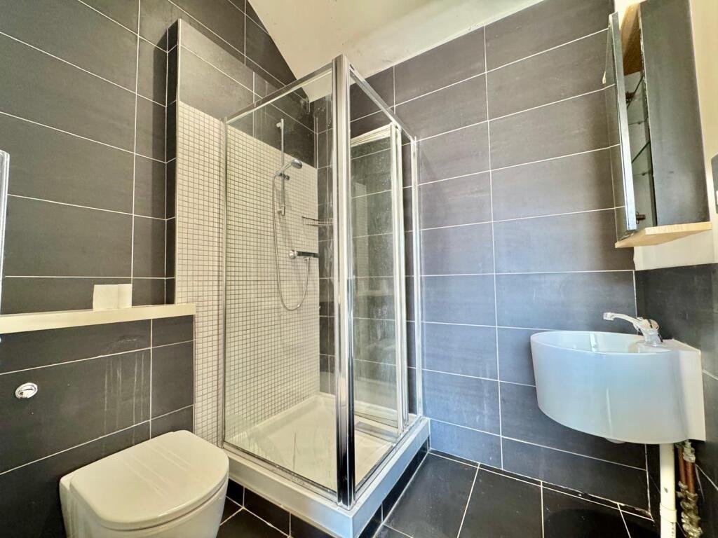 BathroomModern WC, Basin and shower cubicle, tiled flooring, heated towel rail, Jack & Jill doors leading to Bedroom and lounge