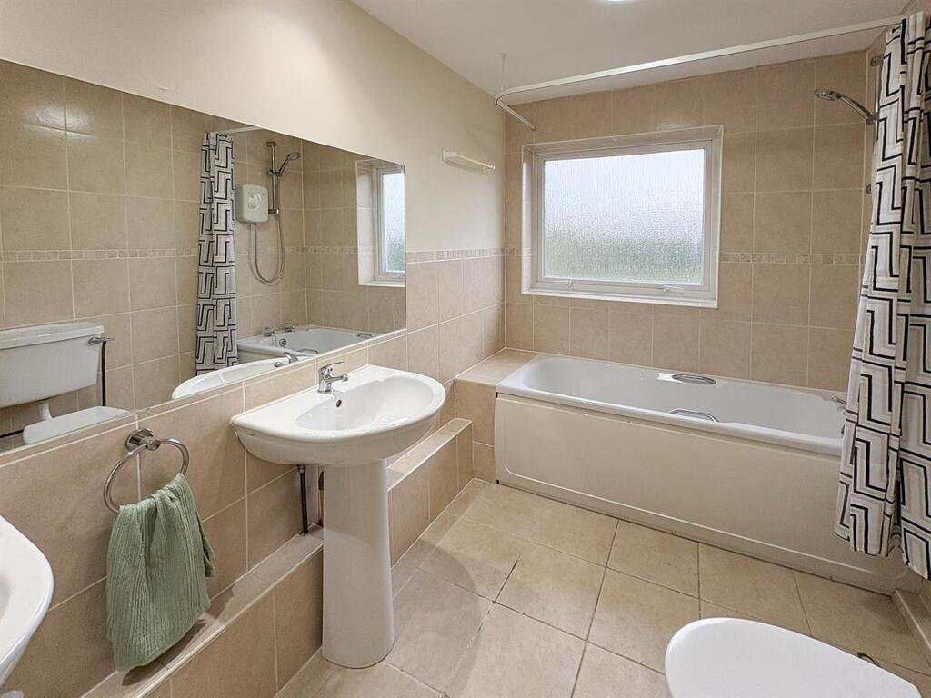 Upstairs, there are three well-proportioned bedrooms and a family bathroom. Bedroom one is a generous double, with bedroom two also offering excellent dimensions. Bedroom three would suit a child’s bedroom, guest room or study. Built-in cupboards provide useful additional storage.