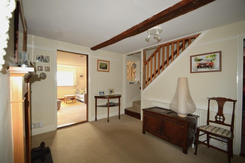 rear, there are beams to the ceiling and an attractive brick future recess adjacent to the fireplace. There are French doors to the rear making it ideal for entertaining. To the front of the house is a spacious and useful study.
