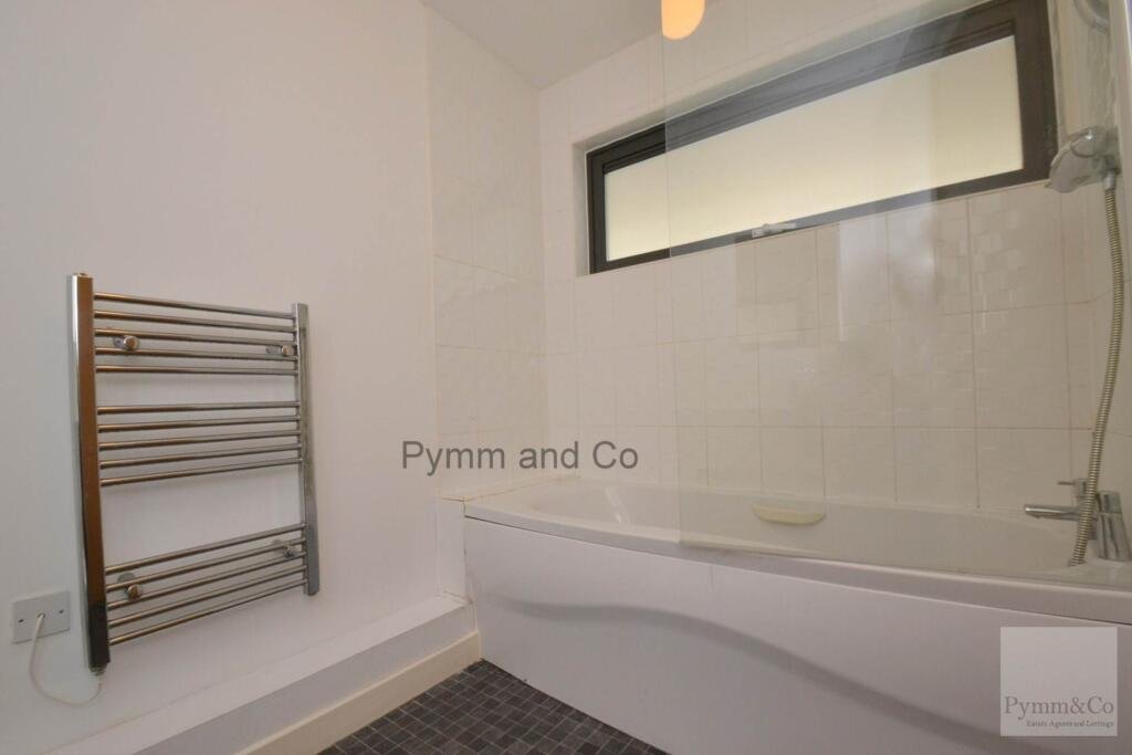 BathroomObscured double glazed window to the front, bath with shower over and shower screen, WC, tiled splashbacks, heated towel radiator.