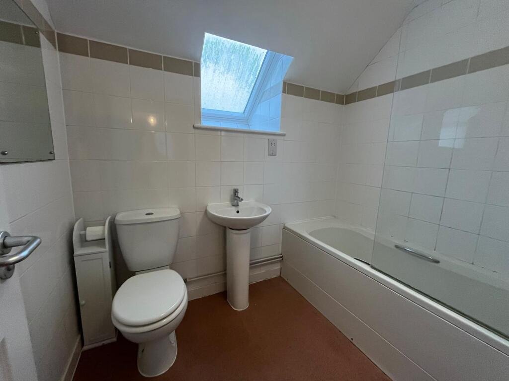 under the counter fridge freezer and electric cooker. There is an integrated extractor hood. Upstairs are two double bedrooms with neutrally painted walls and carpet and a family bathroom with white suite and shower over the bath. There is a communal roof terrace with washing line, accessible from the first floor communal hallway; a secure bicycle store and an allocated parking space. Electricity is invoiced to the flat monthly by the Landlord. EPC rating: D.