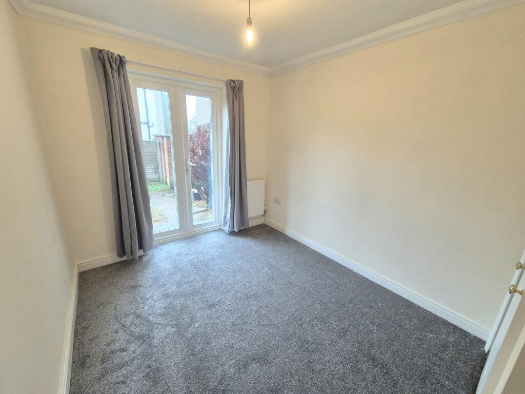 Bedroom Three (double)Built in wardrobe and patio doors to rear garden, carpeted.