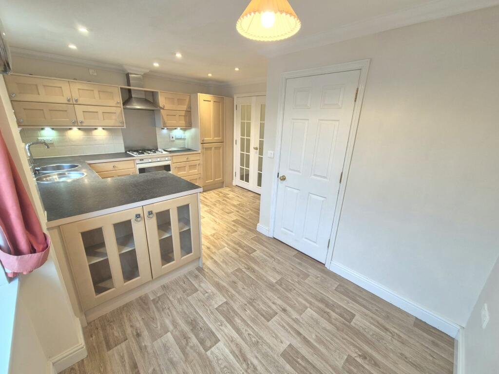 Kitchen/breakfast roomThe kitchen is a good size with a range of wall and base units, gas hob and electric oven with extractor hood over, dishwasher, fridge/freezer, downlights, 2 windows to the rear aspect, vinyl floor and an area with space for a table and chairs.