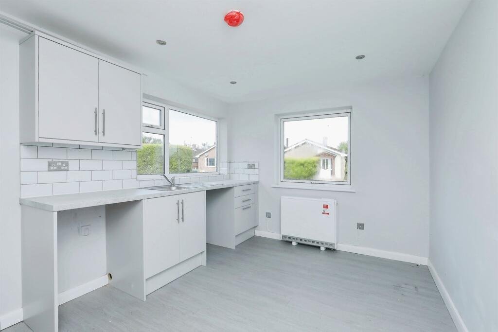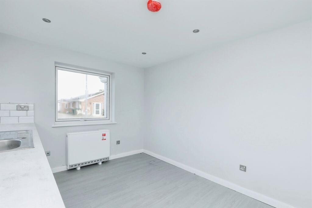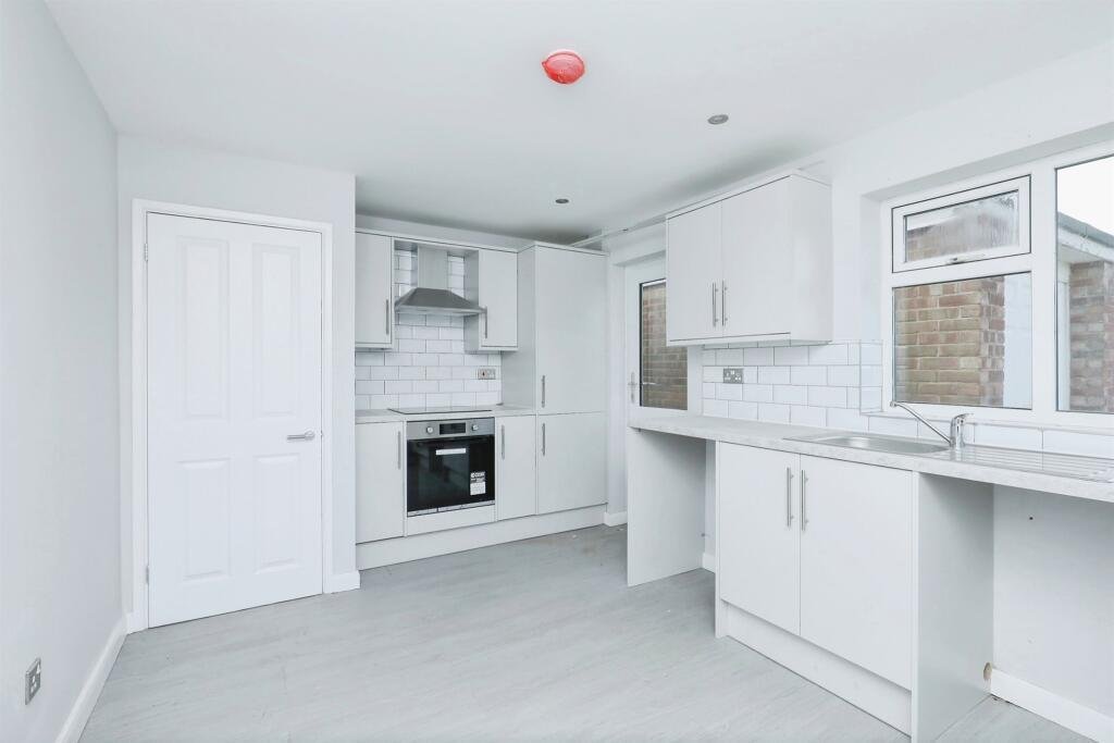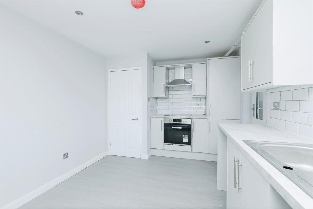 Kitchen 12′ 8″ x 9′ 9″ ( 3.86m x 2.97m )Dual aspect room with double glazed windows to front and side aspects, brand new fitted kitchen with wall and base units having work surfaces over, electric oven and hob with cooker hood over, extractor fan, space and plumbing for washing machine and dishwasher, high-retention electric panel heater, smooth ceiling and recessed lighting. Double glazed door to side passageway.