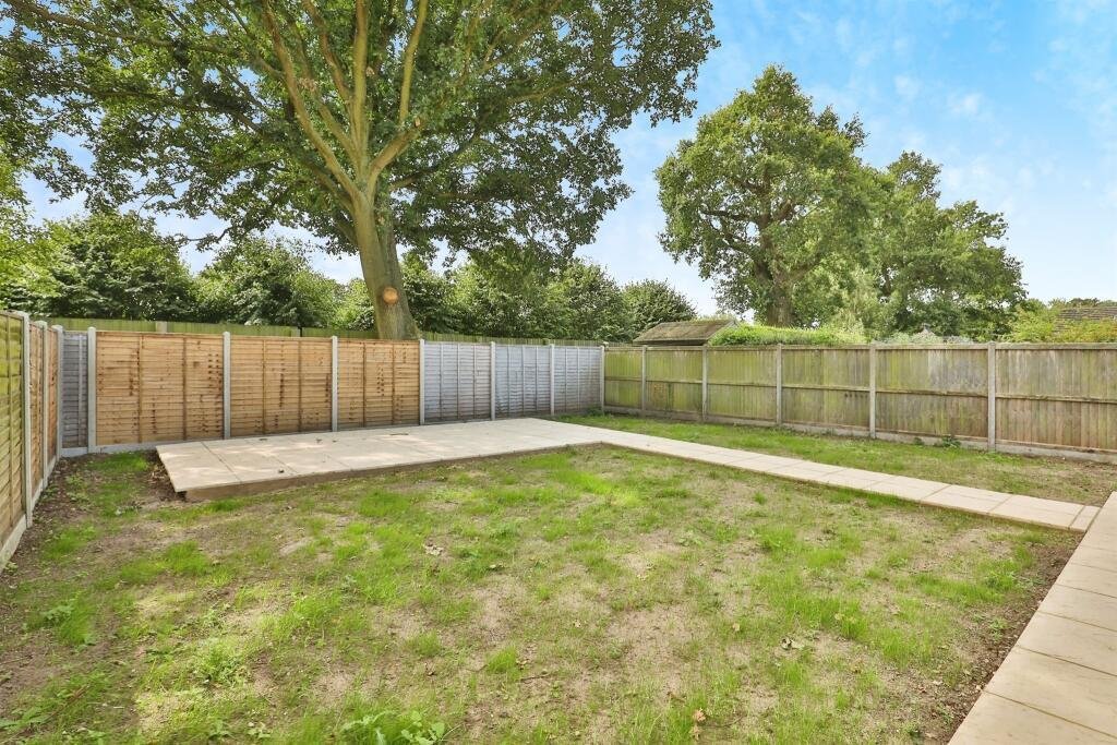 Rear Garden A passageway runs from front to back betwixt the bungalow and garage. The rear garden has seeded turf and a newly laid, spacious patio with space beside for a shed/summerhouse.