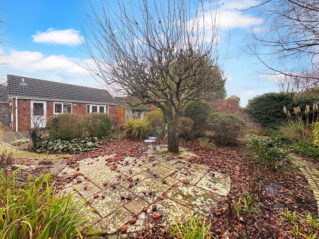 Spacious and well presented 4 bedroom detached bungalow, set back from the road, with plenty of driveway parking and a double garage. Freshly decorated throughout, with lovely enclosed landscaped garden.
