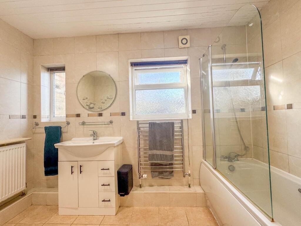 Upstairs, the property features three well-proportioned bedrooms, including two generous double rooms and a single bedroom, which could also serve as a study or