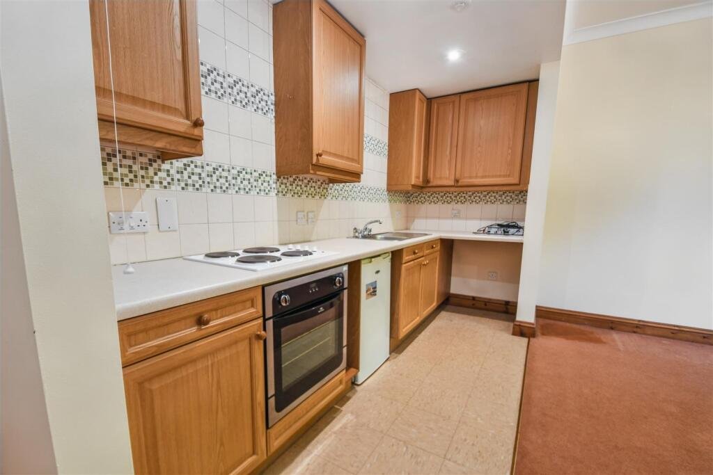 Kitchen – Fitted with a range of base units and drawers and matching wall mounted cabinets, sink and drainer unit with tiled splash back and built-in electric hob and electric oven. There is space for fridge and washing machine.