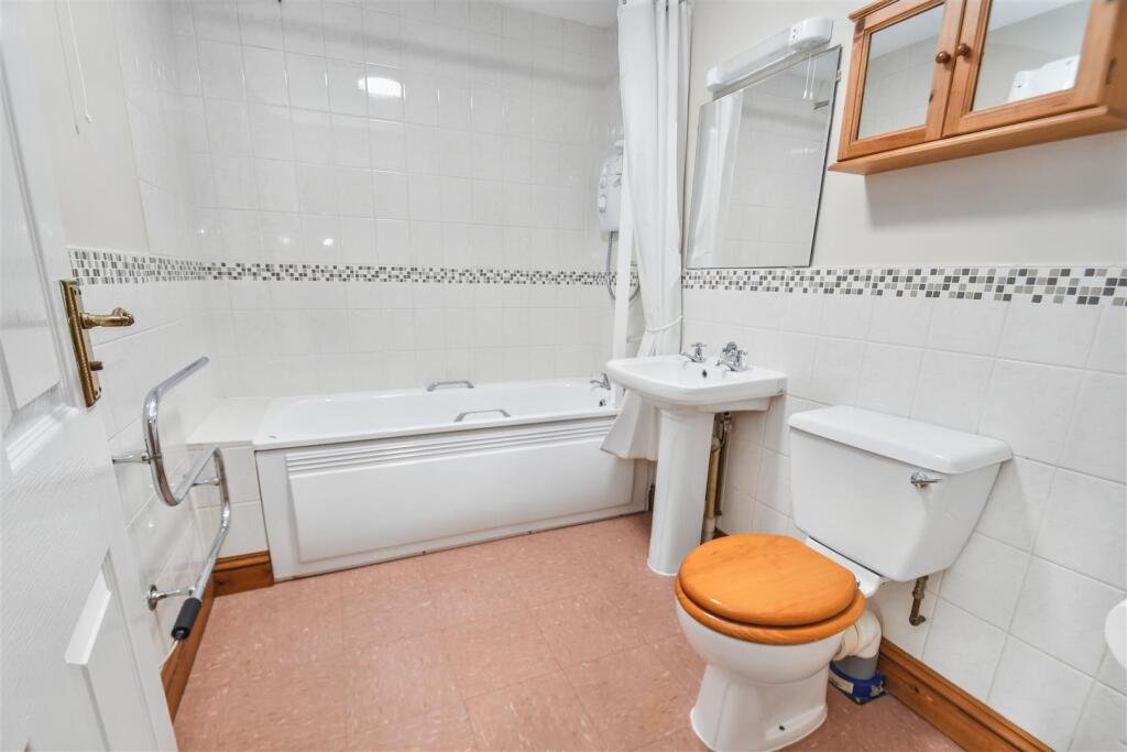 Bathroom – Fitted with panelled bath with electric shower over, WC, pedestal wash basin, tiled splash backs, heated towel rail and a built-in airing cupboard.