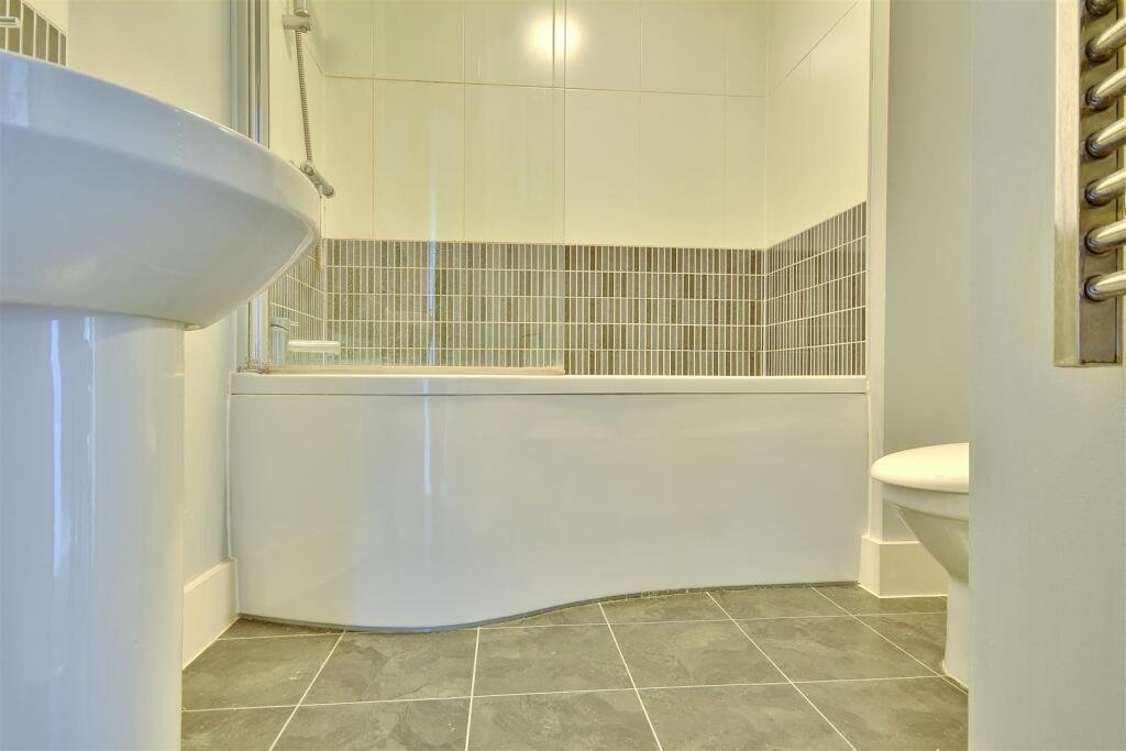 BATHROOMFitted with a three-piece suite comprising a P-shaped panelled bath with shower over, pedestal wash hand basin and low-level WC, tiled splash backs, heated towel rail, and extractor fan.Edit | Delete