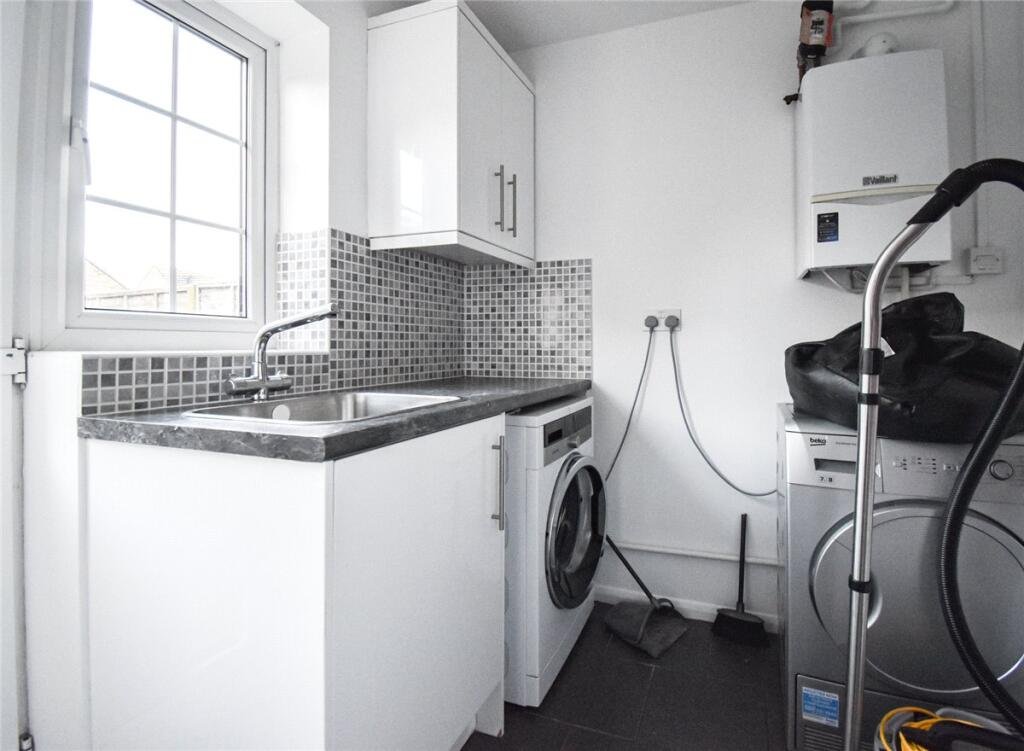 The property features spacious living room, separate dining room with patio doors to rear garden, fitted kitchen with integrated oven, hob & white goods, downstairs WC, utility room.