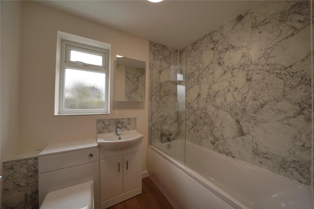 BATHROOM:Suite comprising of low level WC, handbasin, bath with shower over, heated towel rail and window to rear.