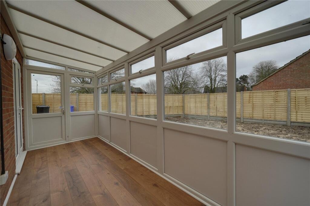 CONSERVATORY:Windows to all aspects, door to side and space and plumbing for washing machine and dryer.