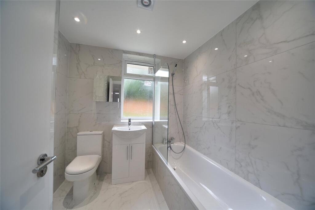 BATHROOM:Suite comprising of low level wc, handbasin and bath with electric shower over.
