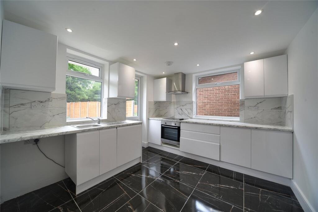 KITCHEN:Range of wall and base units, built in electric oven over hob with extractor fan over, space for fridge-freezer, space and plumbing for washing machine, built in dishwasher. Door to rear. Windows to rear and side.
