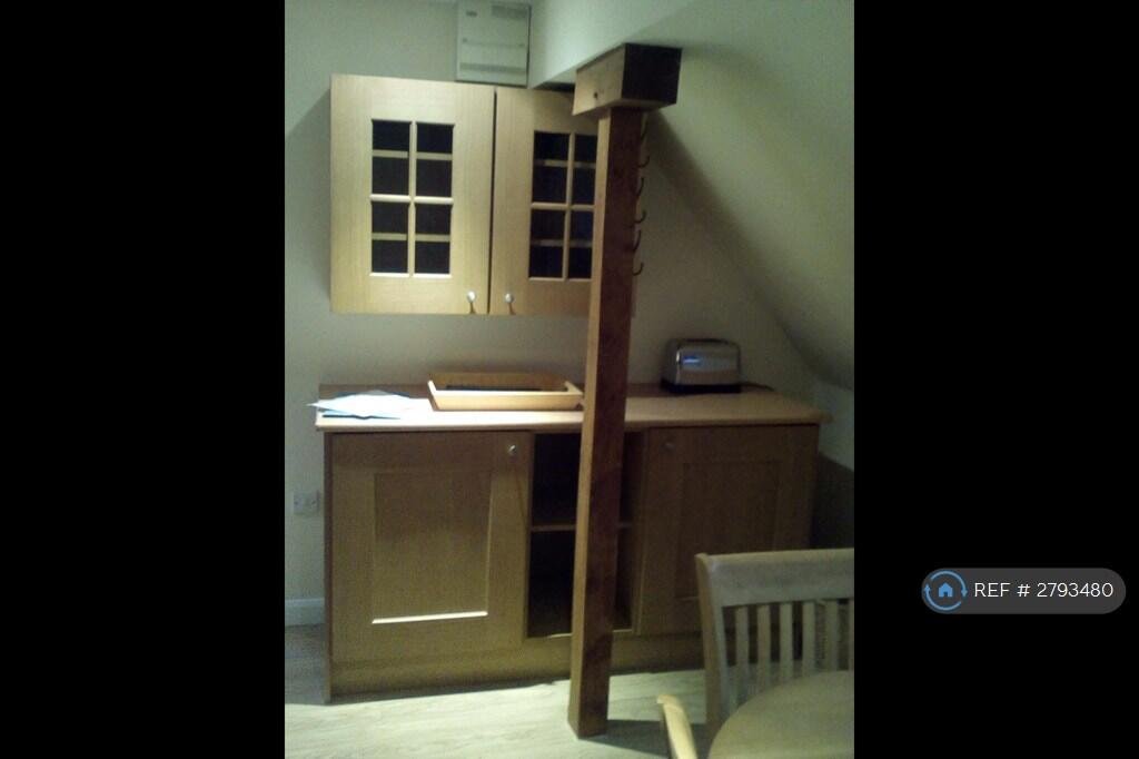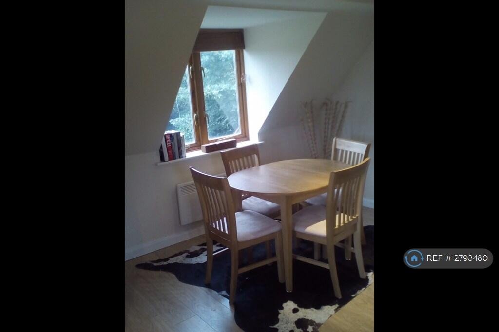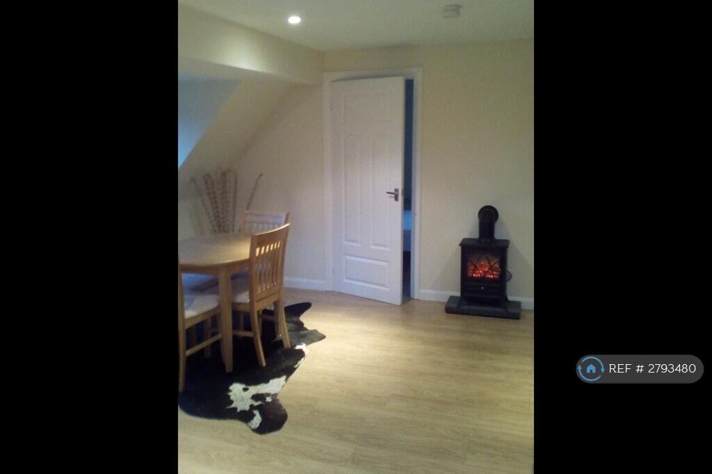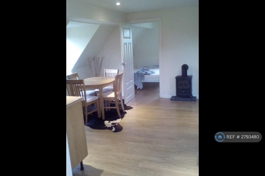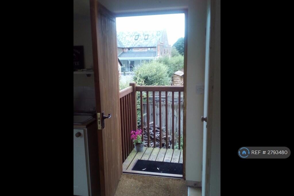 Unfurnished first floor flat comprising of open plan kitchen, dining and sitting room, one double bedroom, one single bedroom/study and shower room. Own entrance. Views over fields. Equipped with fridge, freezer, washer dryer, oven and hob. Use of small garden area and off road car parking. Semi rural area approx. 1.5 miles out of Stowmarket next to golf course and within walking distance of local pubs, fishing lake and tea room.