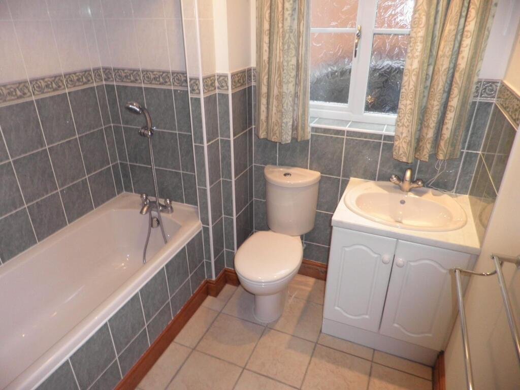BathroomWhite suite-comprising WC, wash hand basin with storage under, bath with shower over, window to the side aspect, tiled flooring, extractor fan, tiled splash back.