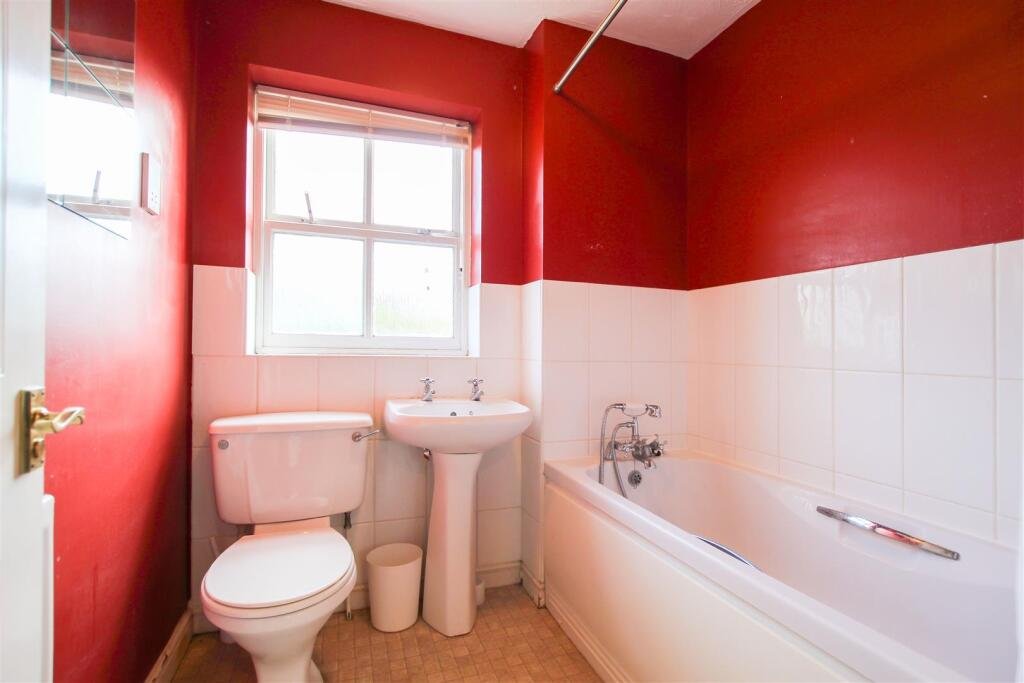Bathroom – bath with shower attachment, wc and wash basin with window to rear aspect above with obscured glass.