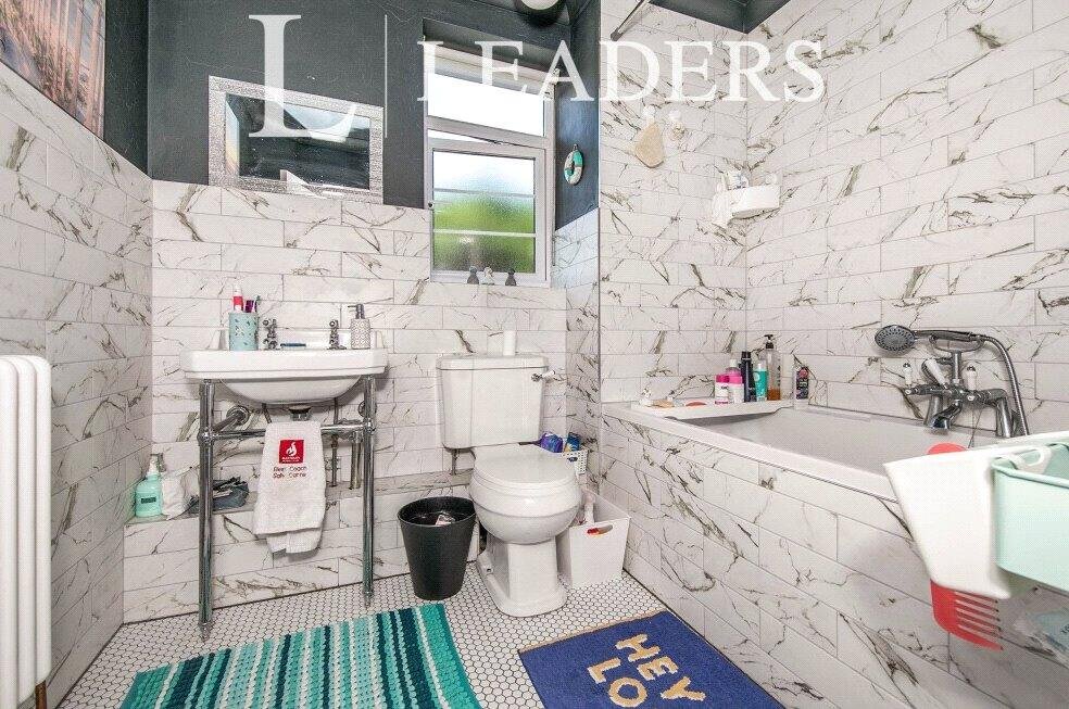 Following on from the living room is the double bedroom with light grey carpets and a built in storage cupboard. Off from the bedroom is the modern bathroom with tiled floorings and walls, shower over bath.