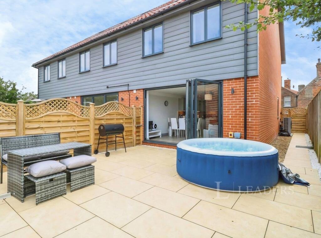 Leaders are pleased to present this Furnished three-bedroom, three-bathroom modern terraced house in Docking, offered on a room-only basis, featuring high-end contemporary interiors, open-plan living with fully equipped kitchen and utility room, underfloor heating via air source heat pump, private gardens, parking, and convenient access to King’s Lynn and the North Norfolk coast. EPC Rating: B. Council Tax Band: C