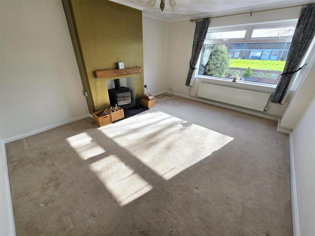 Lounge – 3.85 x 4.61 (12’7″ x 15’1″) – Fitted carpet, coved ceiling, large aspect uPVC window overlooking the central green, radiator, power points, tv point, cast iron log burner inset in a fireplace with slate hearth.