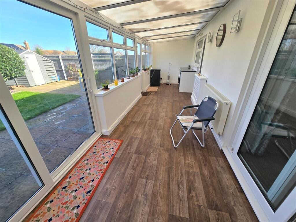Garden Room – 2.34 x 8.12 (7’8″ x 26’7″) – Timber effect vinyl flooring, radiators, power points, large aspect uPVC windows, sliding patio doors and uPVC door leading out to rear garden, ample space for dining and living furniture, polycarbonate roof, plumbing for washing machine