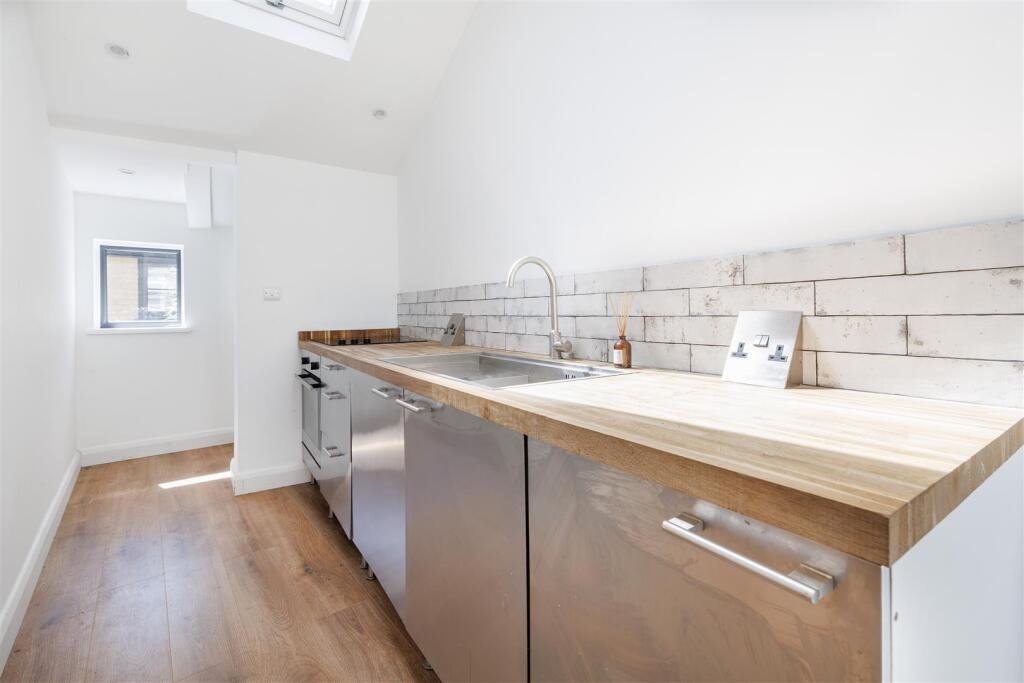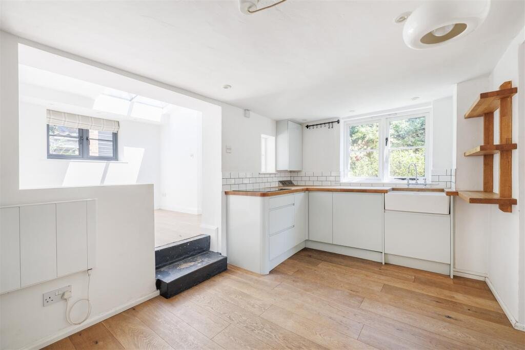 A more recent addition to the cottage is the stunning dining/family room. Bathed in natural light from overhead rooflights, this elegant space opens directly onto the rear garden and also provides access to a convenient ground-floor WC.Upstairs, the first floor offers two bedrooms. The principal bedroom benefits from built-in storage and access to a beautifully appointed bathroom, complete with dual wash basins, a double-ended bath, and a separate shower. From the landing, steep stairs rise to a further versatile room tucked into the eaves.