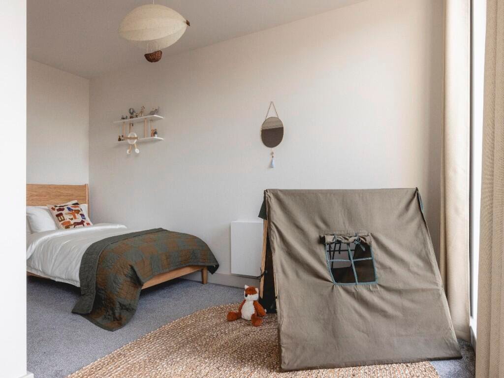 A beautifully-designed new four bedroom house with a private garden in the heart of Eddington, Cambridge. Part of Present Made, a new neighbourhood designed to offer the ultimate rental experience. Your home comes with three spacious bedrooms (three double, one single), four bathrooms, a fully fitted kitchen and expansive open plan dining and living area. A cosy study is found just off the main living space. Floor-to-ceiling glass doors let in lots of natural light and lead out to your own large private garden. The fittings and finishes are modern and high-spec – enjoy