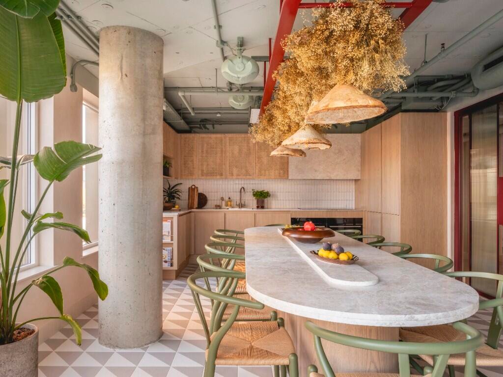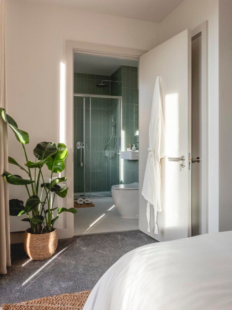 integrated Bosch appliances, built-in storage and waterfall showers.